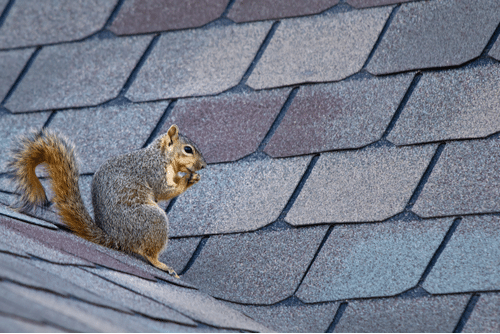 Squirrels can do a considerable amount of damage from digging and burrowing in the roof. Squirrels can damage or remove shingles, clog gutters, and damage vents and vent fans. Birds may seem harmless, but once they have made their way into the roof through a vent or hole (perhaps made by another animal) they often damage insulation and electrical wiring.